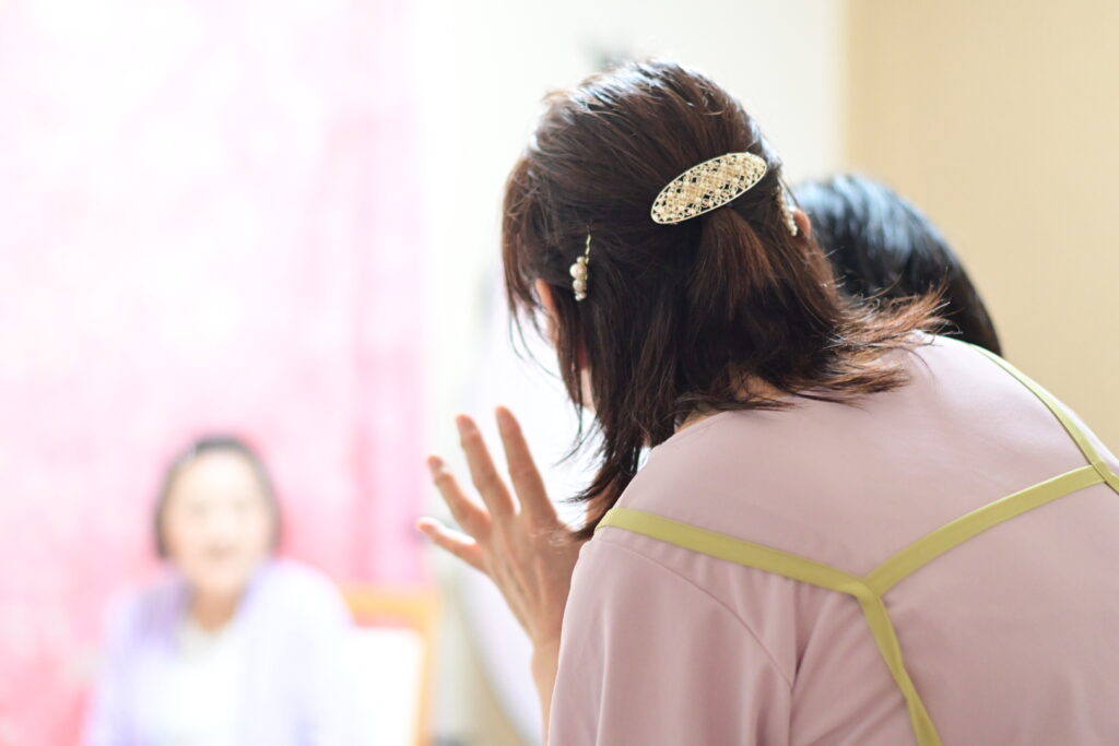 ご本人の好きなものや好きな人の話を中心に。また、何歳になっても女性は女の子なので女心をくすぐるような質問や声掛けをすると恥ずかしそうな可愛い笑を引き出すことができます。
